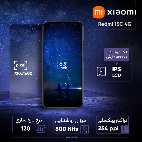 گوشی Redmi 15C 4G یکی از تازهترین میانردههای اقتصادی شیائومی است که با تمرکز بر دوام باتری، صفحهنمایش بزرگ و طراحی مدرن روانه بازار شده است. این دستگاه با بدنهای مقاوم و گواهیIP64 در برابر گرد و غبار و پاشش آب، ترکیبی از استحکام و زیبایی را ارائه میدهد. نمایشگر 6.9 اینچی IPS LCD با نرخ نوسازی 120 هرتز، تجربهای روان و جذاب را در تماشای فیلم و اجرای بازیها فراهم میسازد. قلب تپندهی این گوشی، تراشهی Mediatek Helio G81 Ultra است که با معماری 12 نانومتری و هشت هستهی پردازشی، عملکردی قابل قبول برای استفادههای روزمره، فعالیت در شبکههای اجتماعی و بازیهای سبک ارائه میدهد. همچنین با پشتیبانی از کارت حافظه جانبی، نگرانی شما در رابطه با حافظه را رفع میکند. در بخش تصویربرداری، دوربین اصلی 50 مگاپیکسلی به همراه لنز کمکی QVGA، تصاویری شفاف و دقیق ثبت میکند و دوربین سلفی 8 مگاپیکسلی نیز برای تماسهای تصویری و عکسهای روزمره کیفیت مناسبی دارد. باتری 6000 میلیآمپرساعتی با شارژ سریع 33 واتی یکی از نقاط قوت اصلی این دستگاه محسوب میشود. در مجموع، Redmi 15C 4G گزینهای ایدهآل برای افرادی است که به دنبال گوشیای بادوام، اقتصادی و کارآمد در عین بهرهمندی از طراحی مدرن و نمایشگر بزرگ هستند.