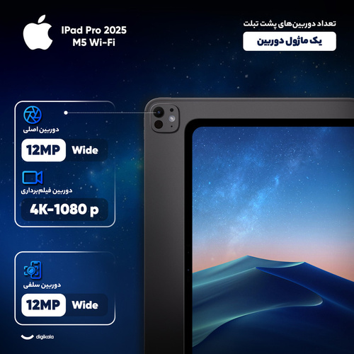 تبلت 13 اینچ اپل مدل IPad Pro 2025 M5 Wi-Fi ظرفیت 512 گیگابایت و رم 12 گیگابایت، رزولوشن دوربین 12 مگاپیکسل، پشتیبانی از قلم و ک
